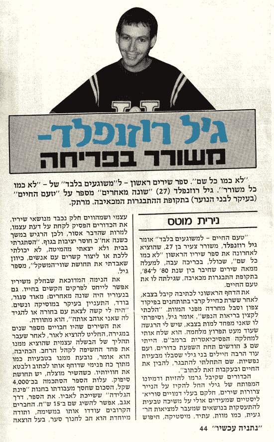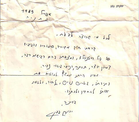 כתבה מתוך עיתון מקומי ומכתב לבבי מיונתן גפן